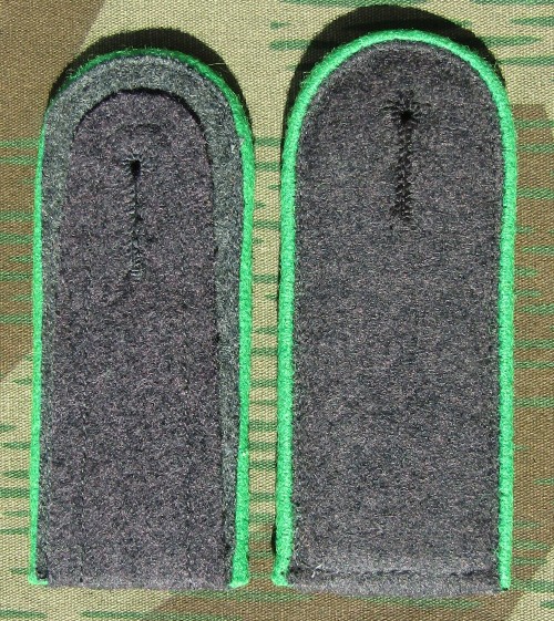 RSE545.Luftwaffe Unteroffizier shoulder boards. Blue/Grey wool with Green piping and 3/4 tress. Rifle Regiments. $24.95pr |