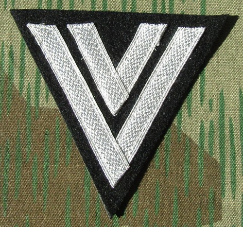 RSE557.Luftwaffe Obergefreiter sleeve chevron. Aluminum tress on black wool. $10.95 |