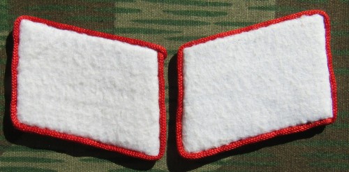 RSE86.H.G.Division enlisted ranks collar tabs.White cloth with red