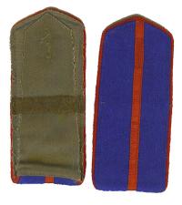 | ERR33.Reproduction Russian WW1 / WW2 Soviet junior officer style shoulder boards with red piping and red center stripe on Blue fabric. Slip on.$5.00 pair |